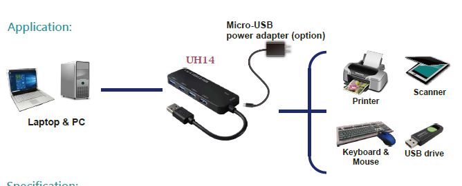 *使用 USB 3.0 端口将 4 * USB 3.0 添加到您的 PC 或笔记本电脑。